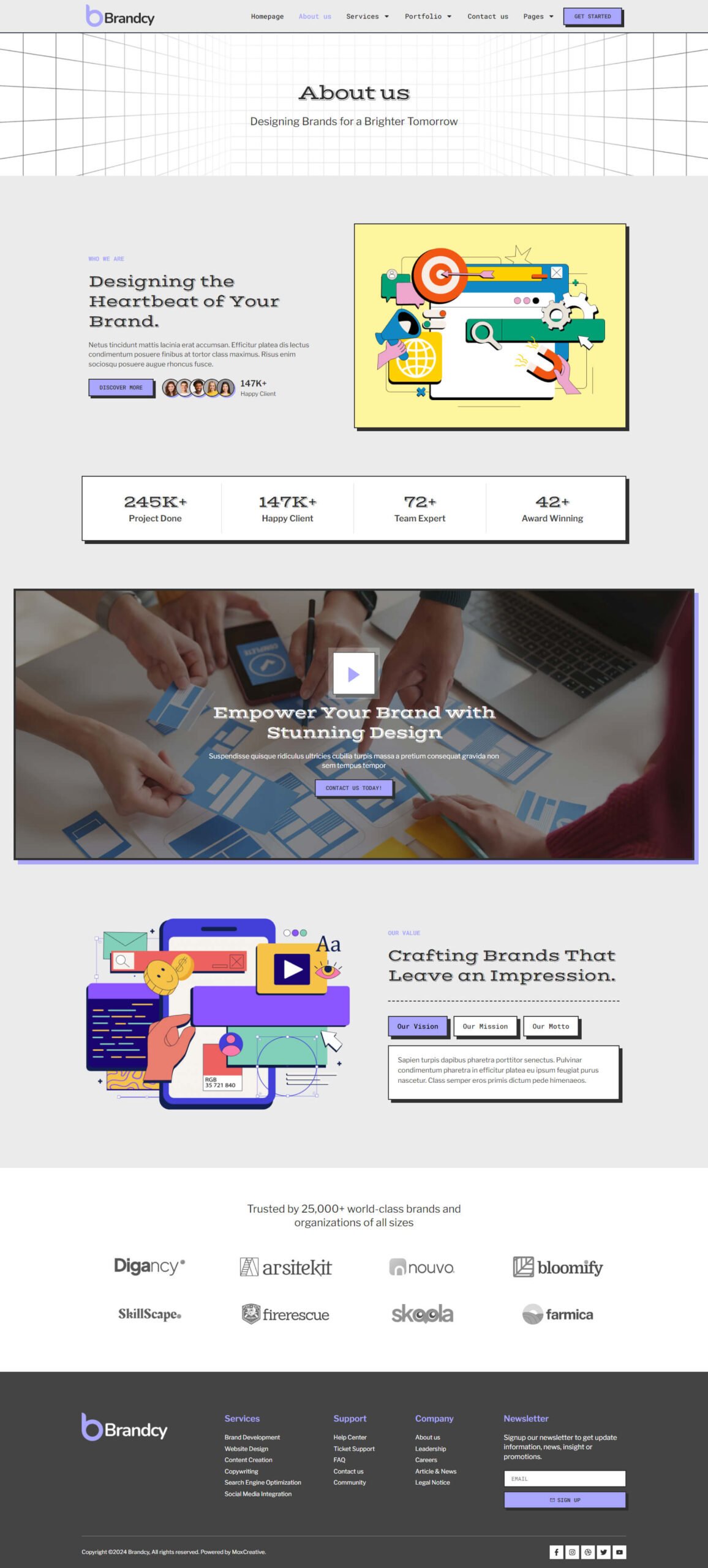 Brandcy is elementor template kit for Branding & Digital Marketing Agency website. It has 12+ pre-built templates with cool design and modern style. You can also use this creative template kit for any kind of businesses or services.