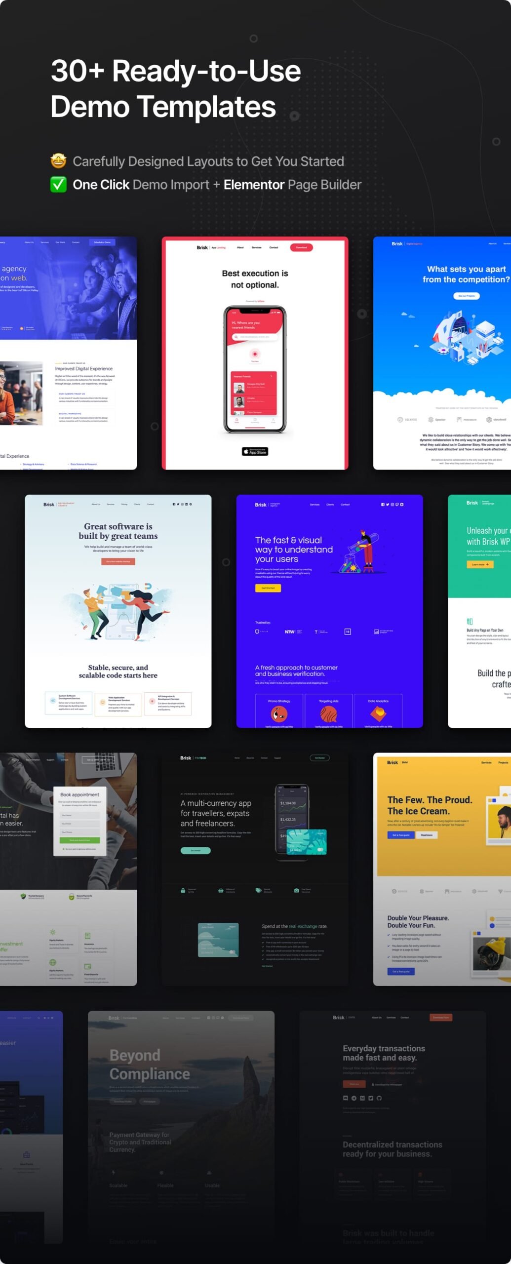 Brisk is a modern, creative, and highly flexible multi-purpose WordPress theme built exclusively for the Elementor page builder. Designed to meet the diverse needs of businesses, startups, creative agencies, freelancers, and eCommerce stores, Brisk combines sleek design aesthetics with cutting-edge functionality. Whether you are launching a new corporate website, building a portfolio showcase, or creating an online store, Brisk offers the tools, layouts, and customization options required to design a professional, high-performing website without touching a single line of code.