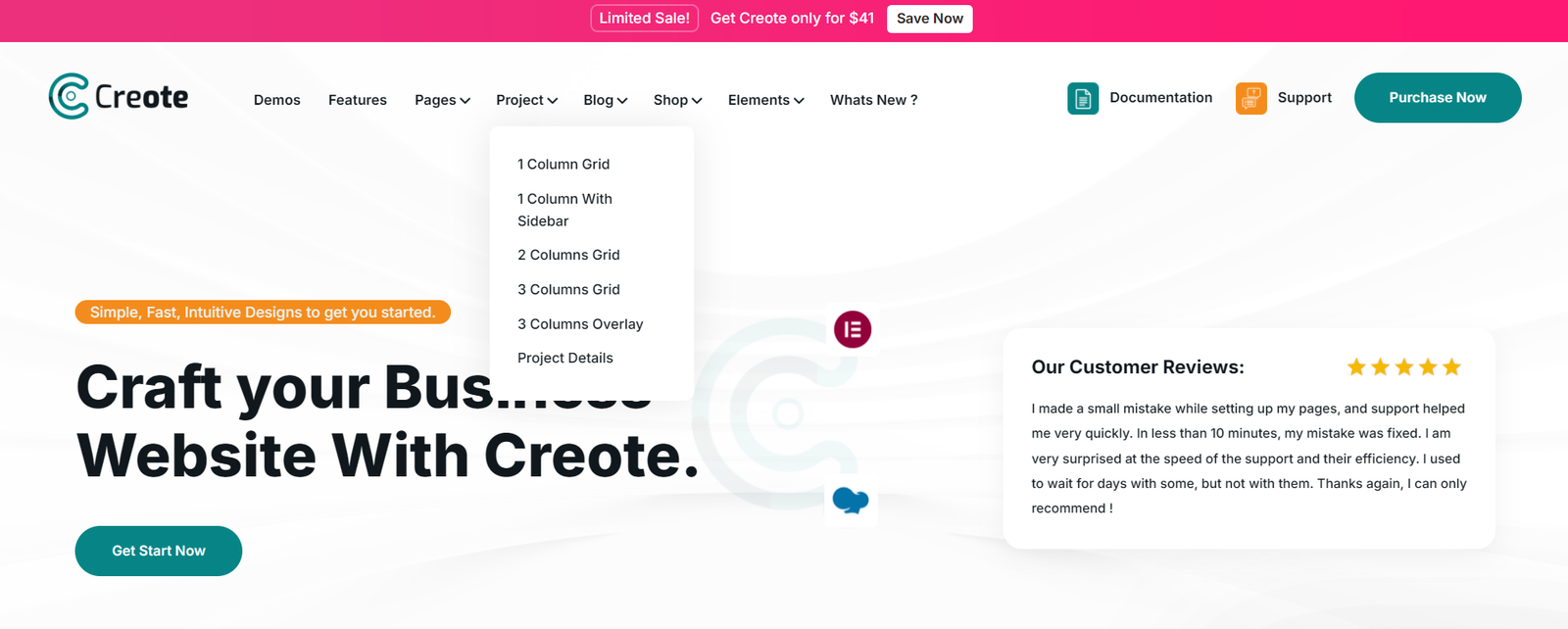Creote comes along with Elementor page builder. The most powerful Page Builder providing you with an advanced handy tool with drag and drop mode to customize your pages on the front end. A User-friendly & real-time customizer helps you design the desired website fast and review your results instantly..