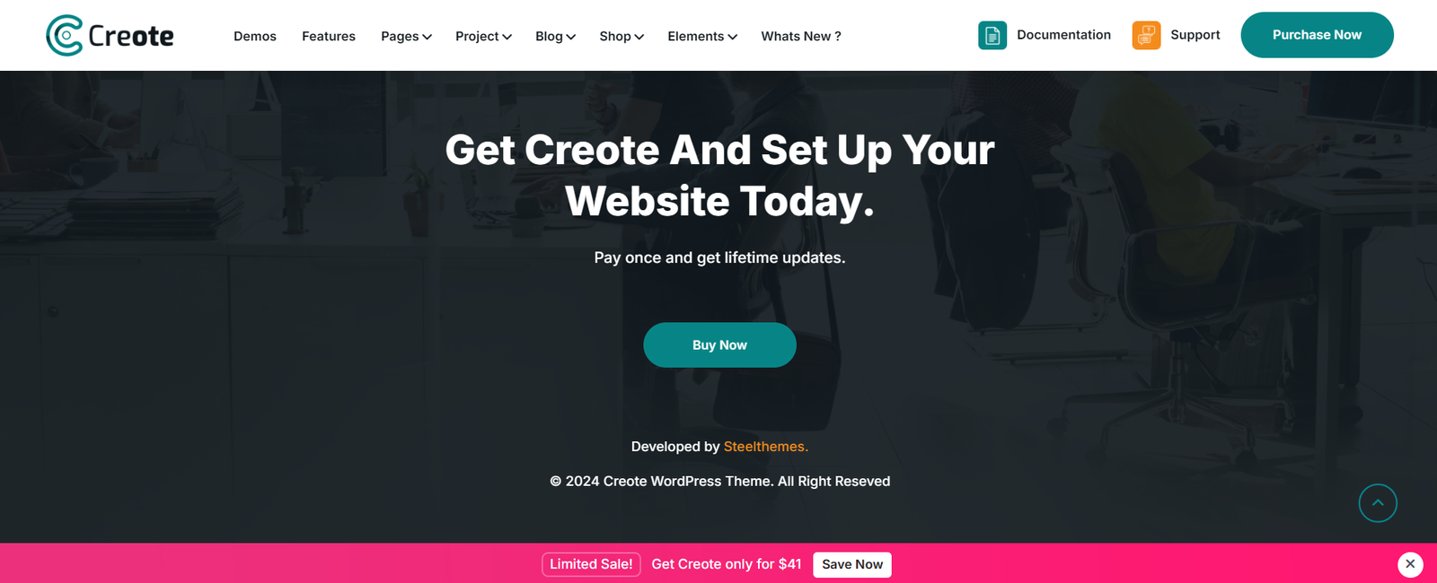 When you purchase Creote, you are purchasing a lifetime of updates. You’ll be entitled to download new demos, pages and features at any time. We are continually improving and adding to our theme so be sure to check in regularly.