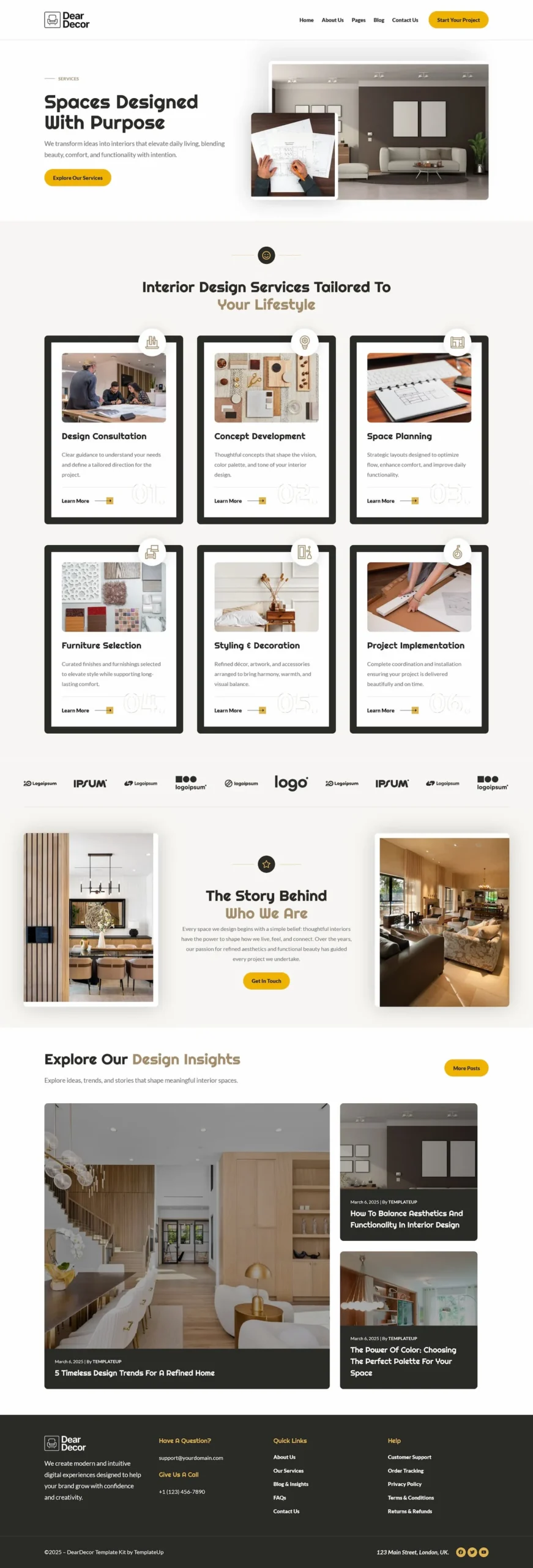 - Elegant & Editorial Design: A clean, contemporary visual direction tailored for interior design studios, decorators, architects, and home styling services.