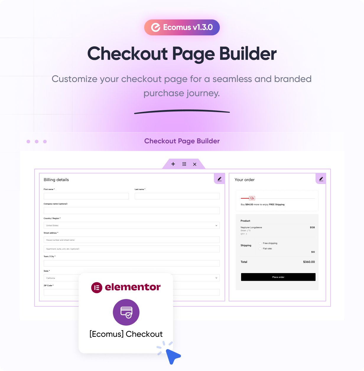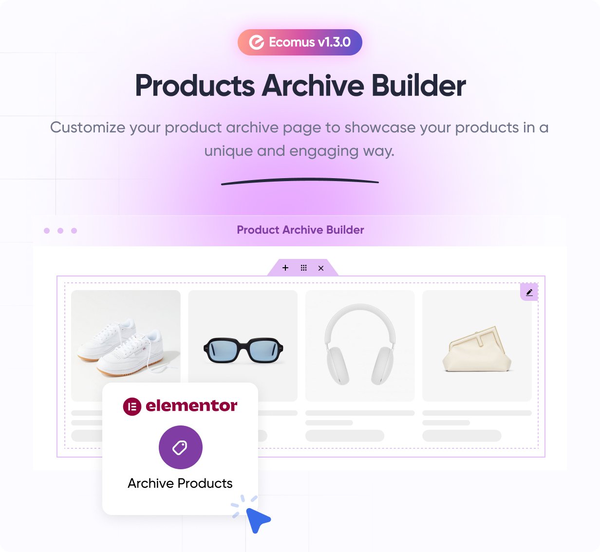 Make customizing your eCommerce website effortless. It supports editing essential pages like the product archive, product page, cart page, checkout page, and 404 page using Elementor. Designed with simplicity in mind, Ecomus Builder allows you to create personalized layouts and styles with ease, offering a user-friendly experience that ensures your online store is visually appealing and tailored to your brand..