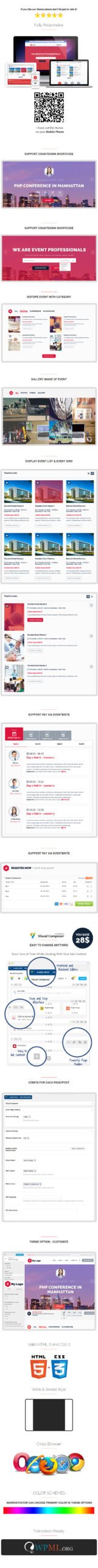 Event Management Theme has been created keeping the varied business needs of event managers, and therefore possesses responsive design, a rich palette of design customization options, and smart layouts to minimize the effort required in sharing information and updates.