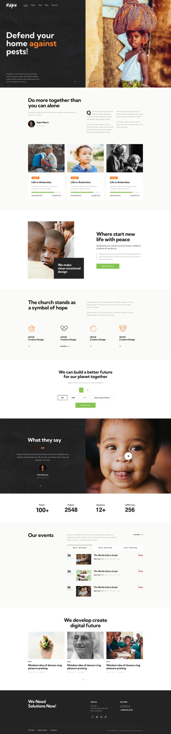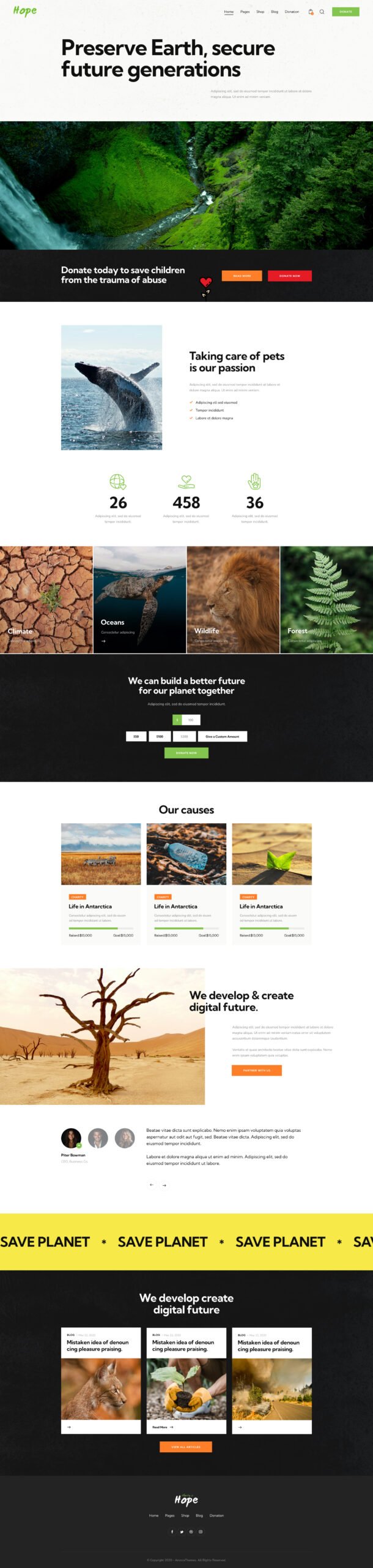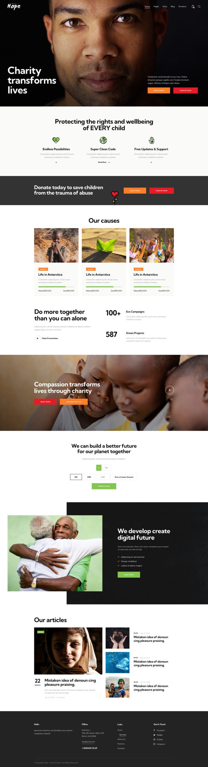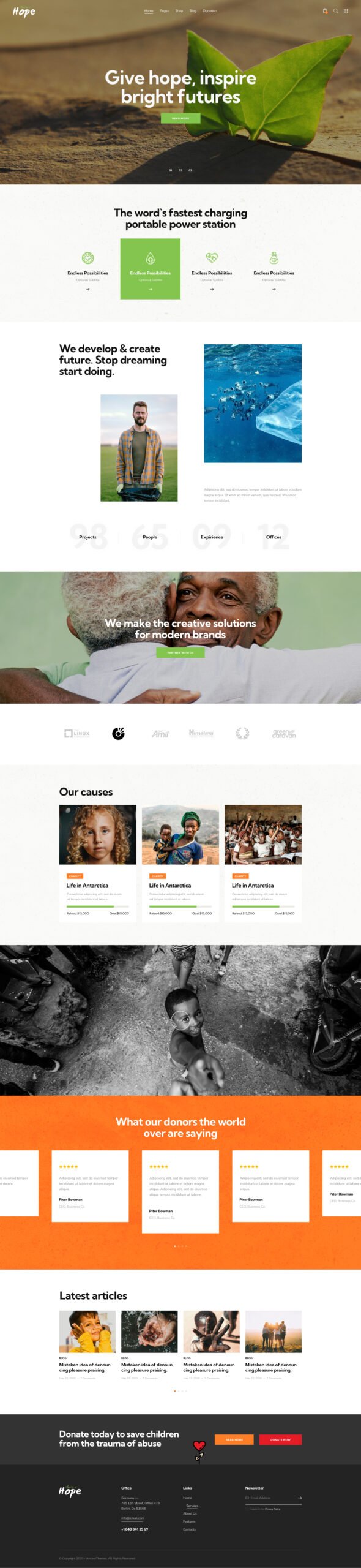 Hope is fully compatible with such premium plugins, as Revolution Slider, MailChimp for WP, Events Calendar, as well as WooCommerce if you wish to sell goods via your website. The theme is 100% responsive and Retina and SEO ready and fully supported with detailed HTML documentation.