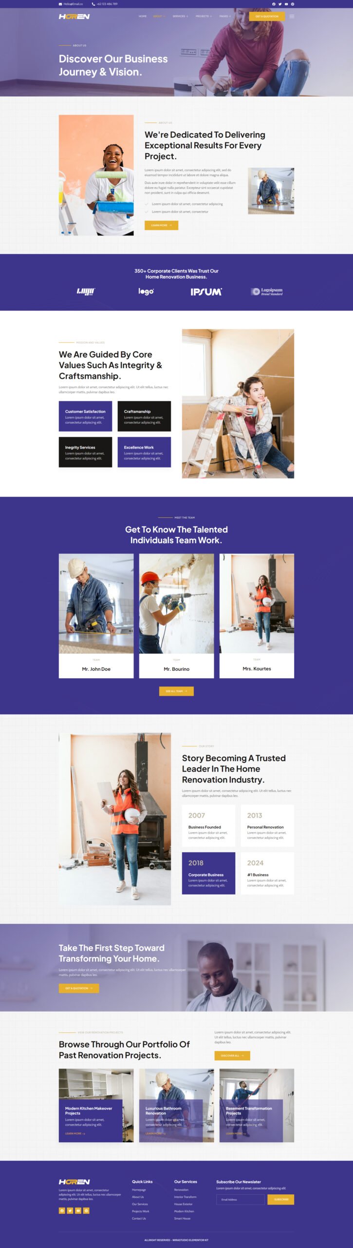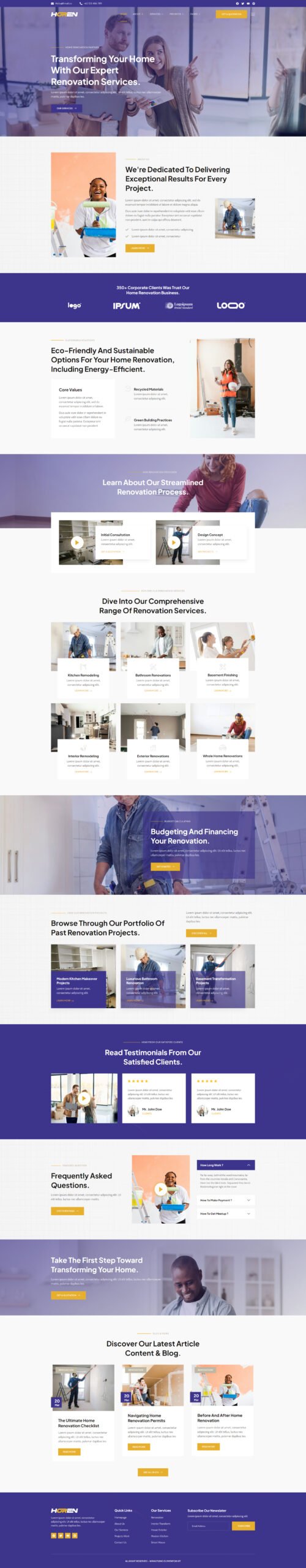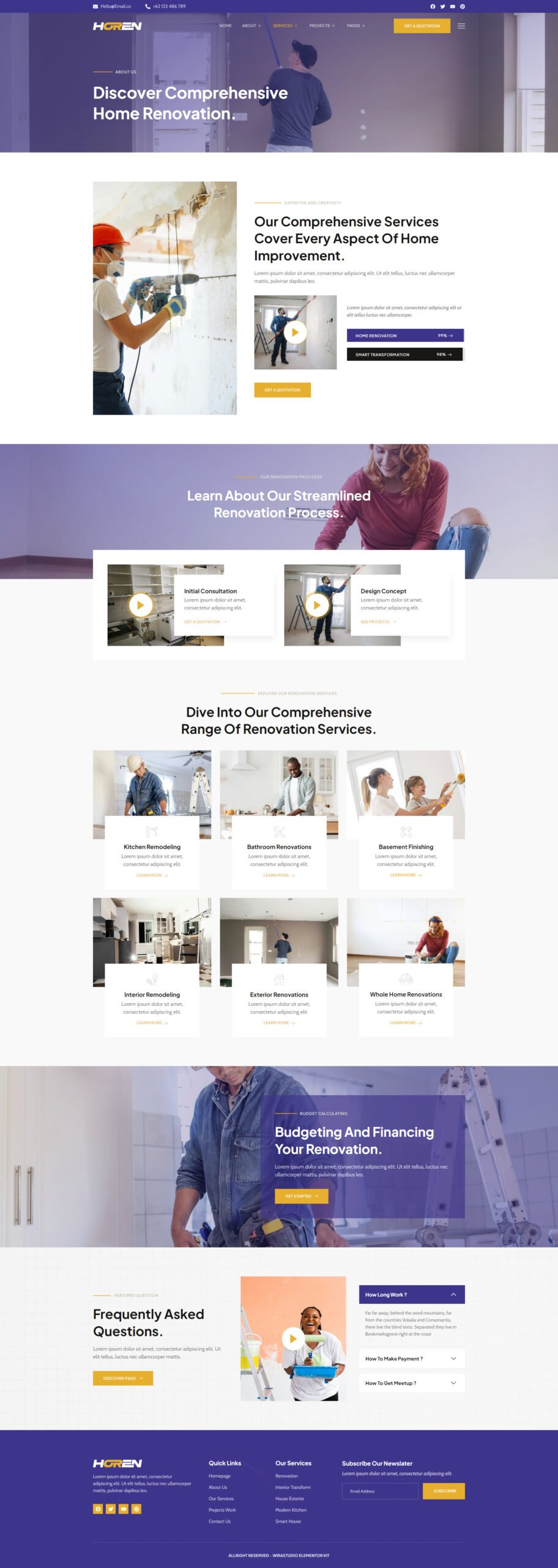Modern and Sleek Design: Impress your visitors with a contemporary design that exudes professionalism. Horen – Home Renovation Services Elementor Template Kit offers a clean and sleek layout, ensuring a delightful user experience.