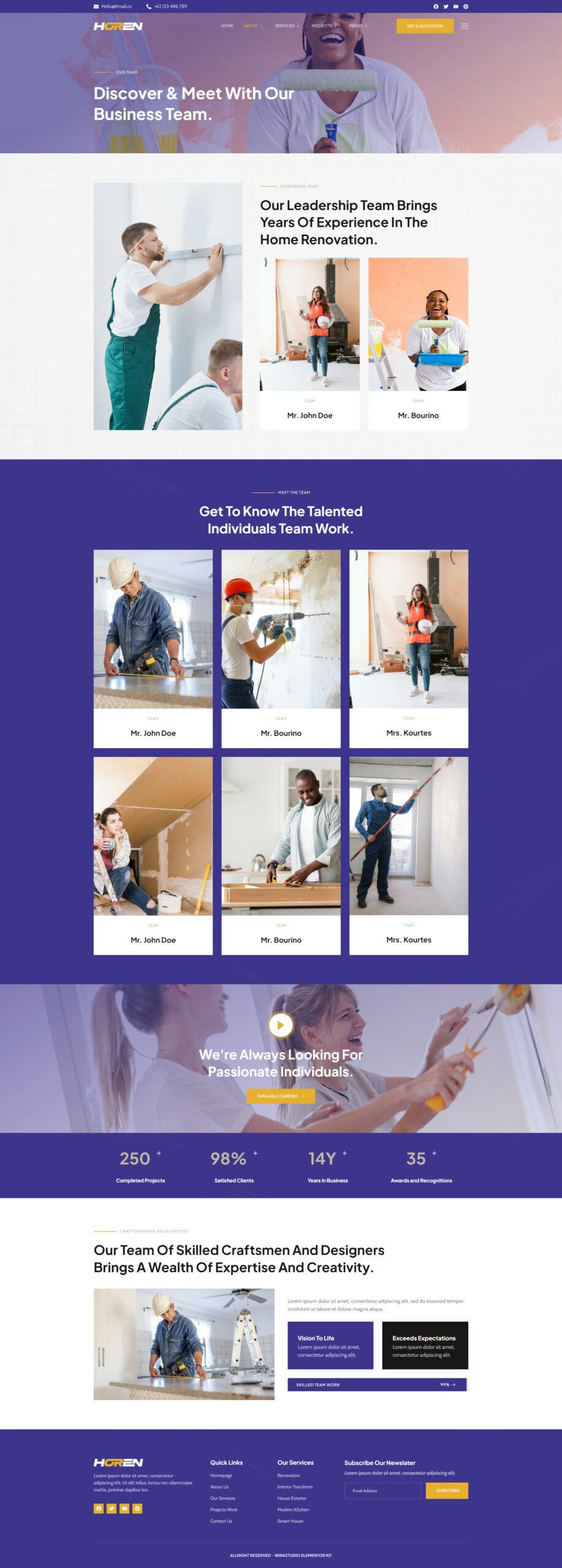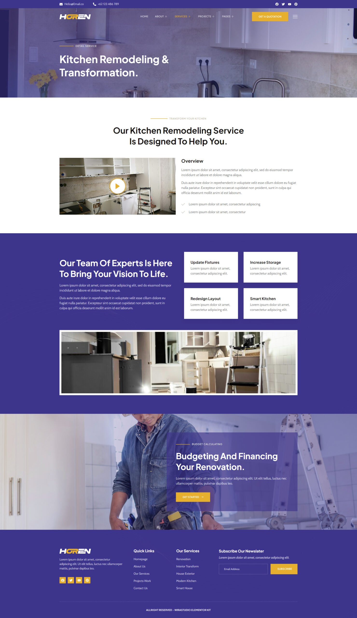 Versatile Sections: From eye-catching hero banners to engaging portfolio layouts, Horen – Home Renovation Services Elementor Template Kit includes a variety of sections to showcase your content effectively. Impress your audience with compelling visuals and a user-friendly interface.