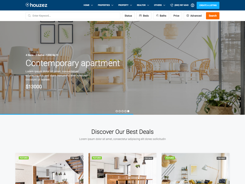 Houzez is a WordPress theme specially designed for the real estate industry. It offers easy-to-use tools that will allow you to manage your agency’s content and listings, while providing the best possible experience for your clients.