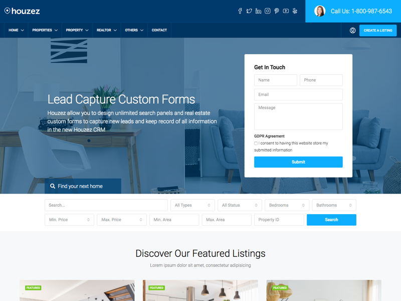 Houzez allows you to administer a real estate marketplace, coordinate agents and accept property submissions