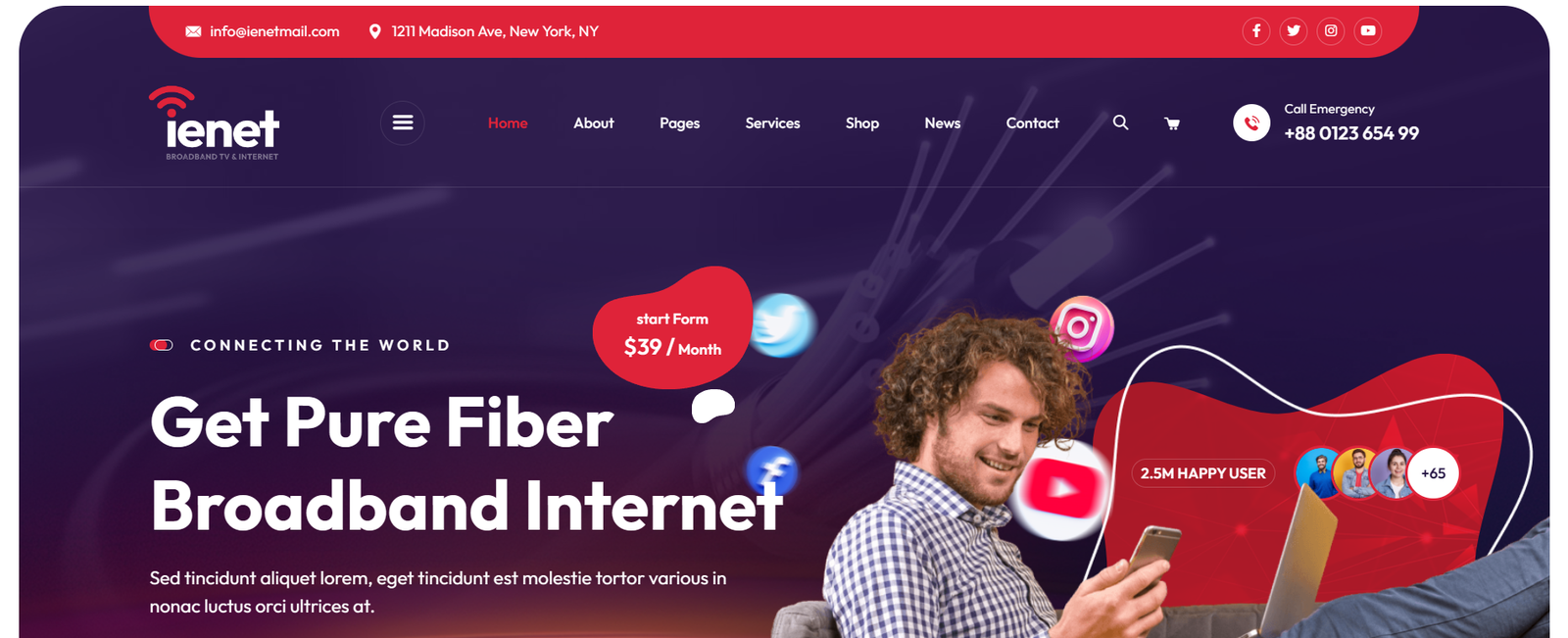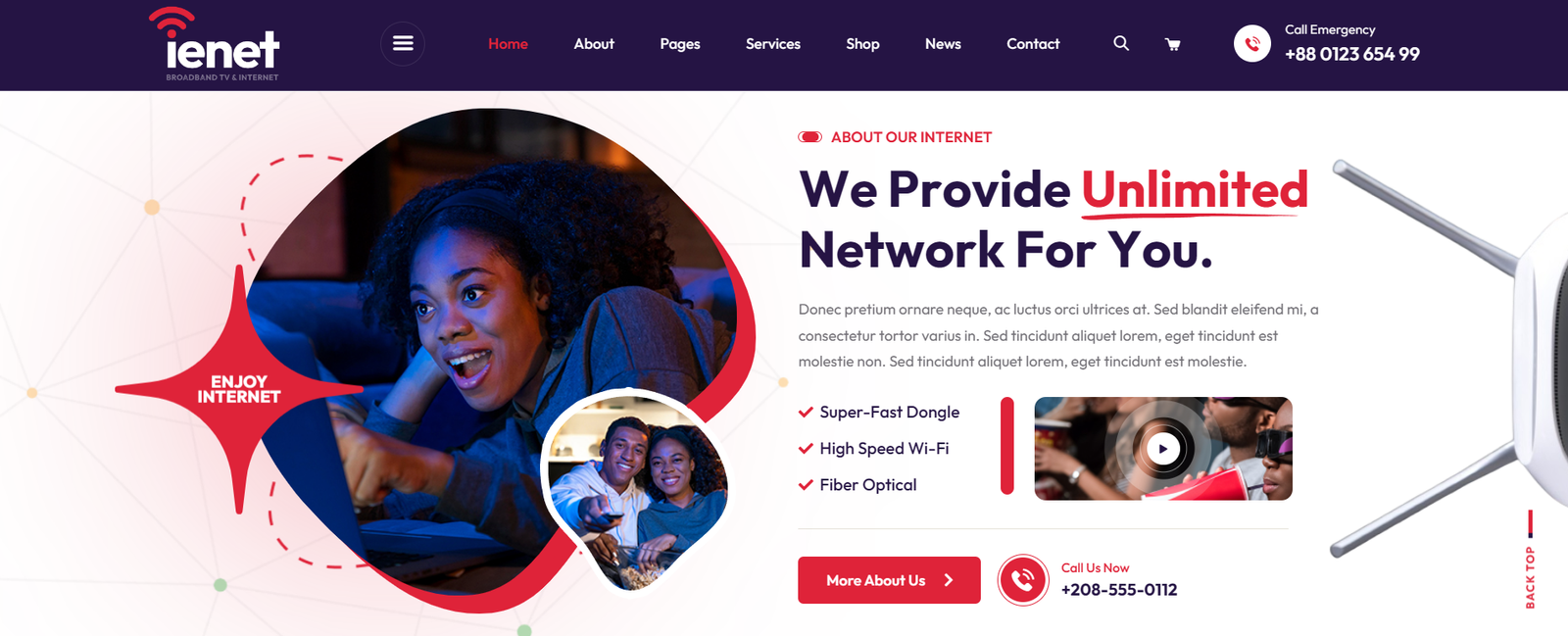 Ienet is a multipurpose & unique WordPress Theme. We especially designed for broadband internet services, satellite TV, Broadband, Online TV, Cable Television, Online Cinema and Movies, Voip, Wifi, Internet and TV store, Digital TV, Computer Networks, IPTV, Telecom company, CCTV and alternative Security, Networking Solution technology and all other internet businesses and websites.