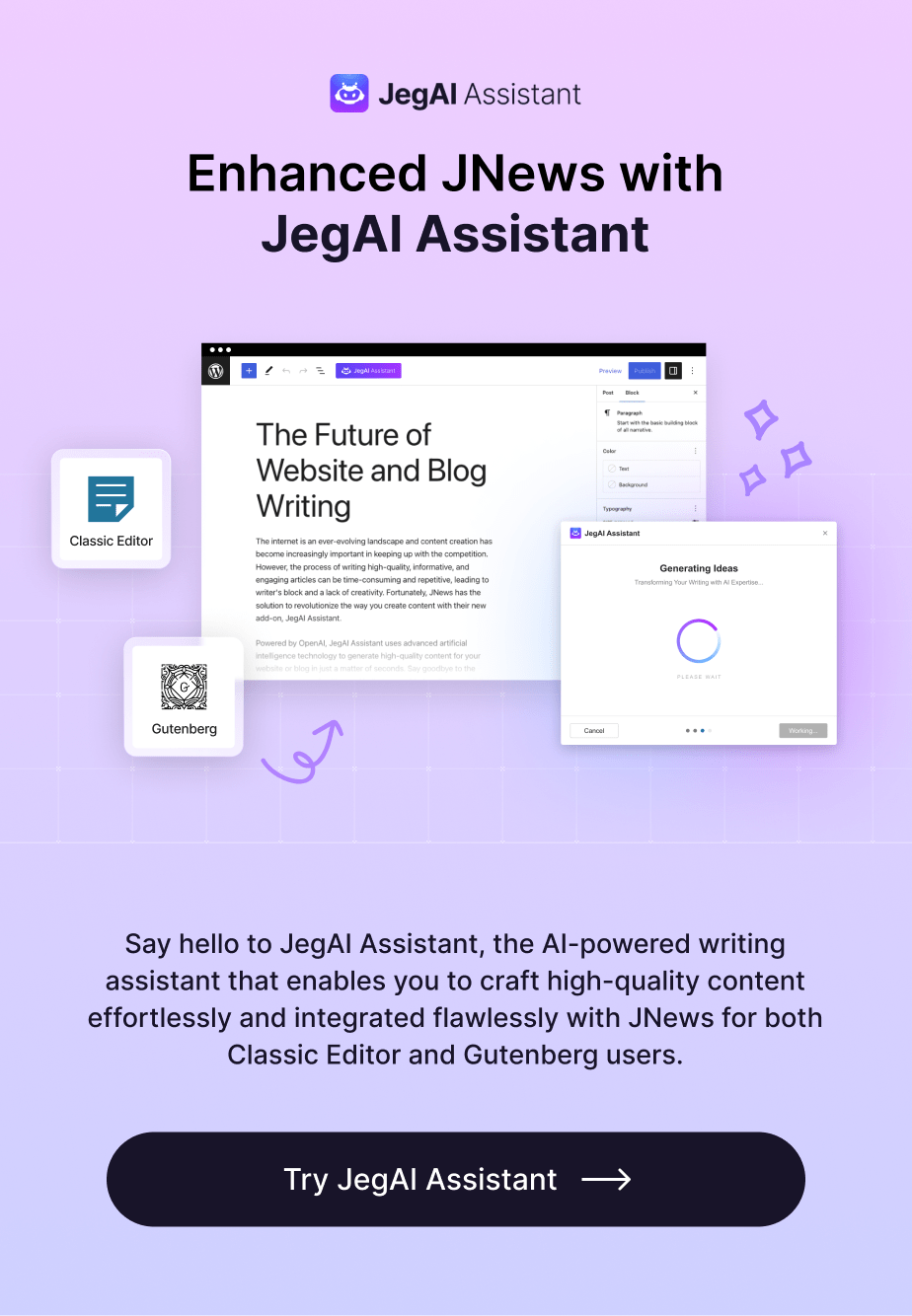 We provide 150+ Homepage Demos that are perfect for your News site, Magazine site, Blog site, Editorial site, and for all kinds of publishing websites. Also provided automatic import feature to replicate one of the JNews demos that you like with just a click.