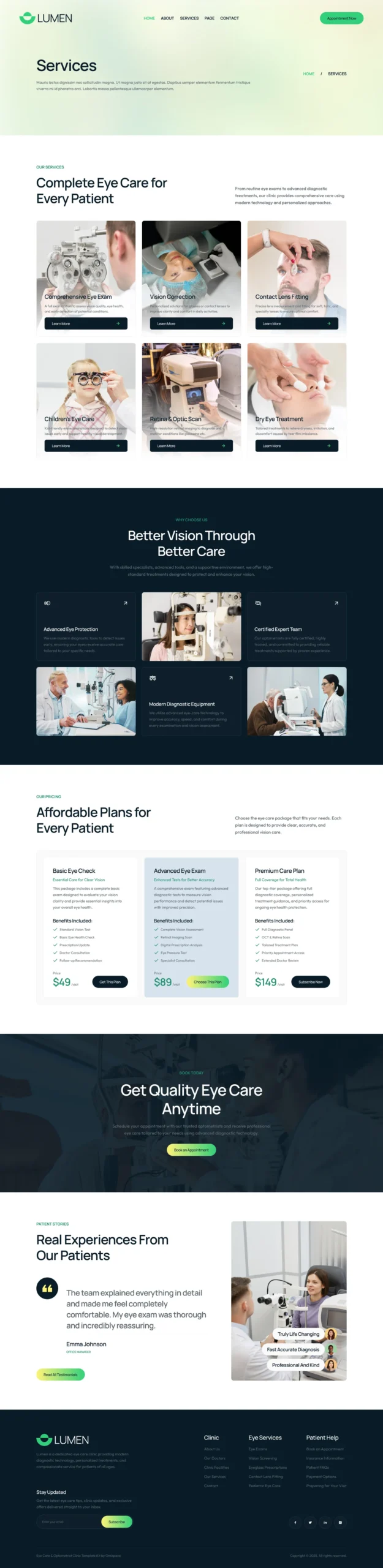 Optimized for mobile responsiveness, usability, and fast loading, Lumen ensures your clinic’s website looks sharp and functions smoothly on any device. It is the perfect solution for creating a professional eye care website without starting from scratch or writing a single line of code.