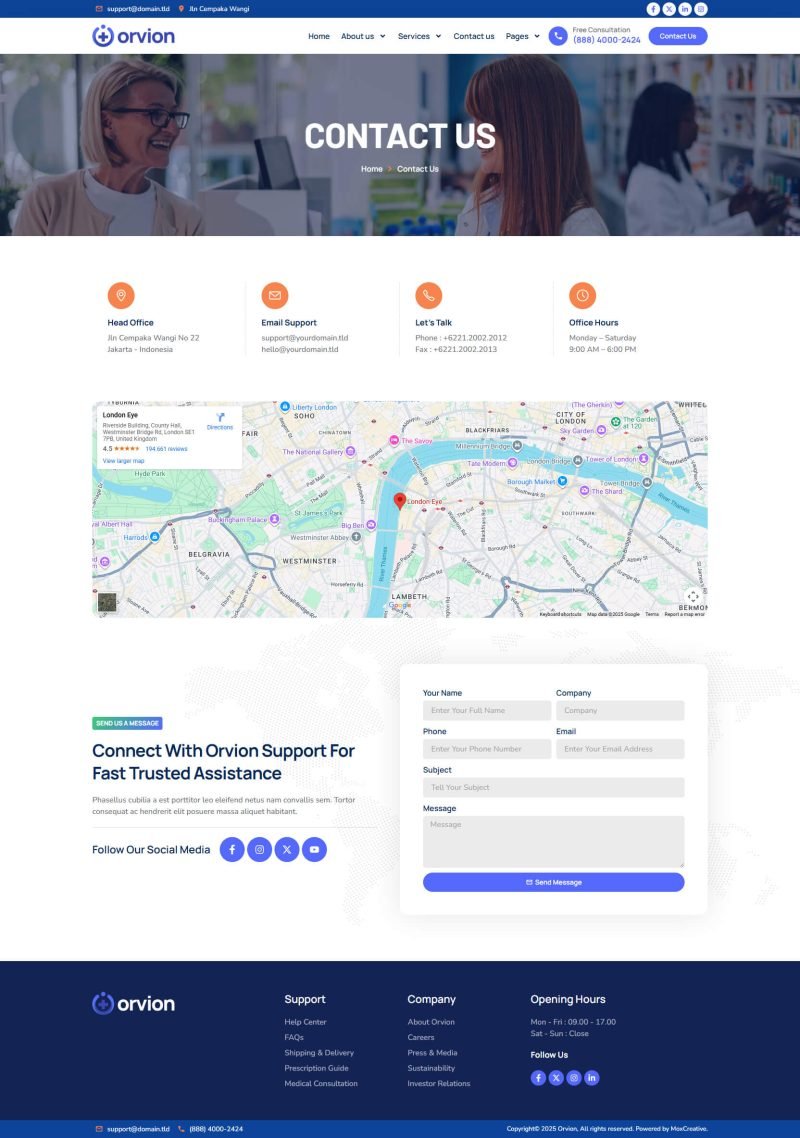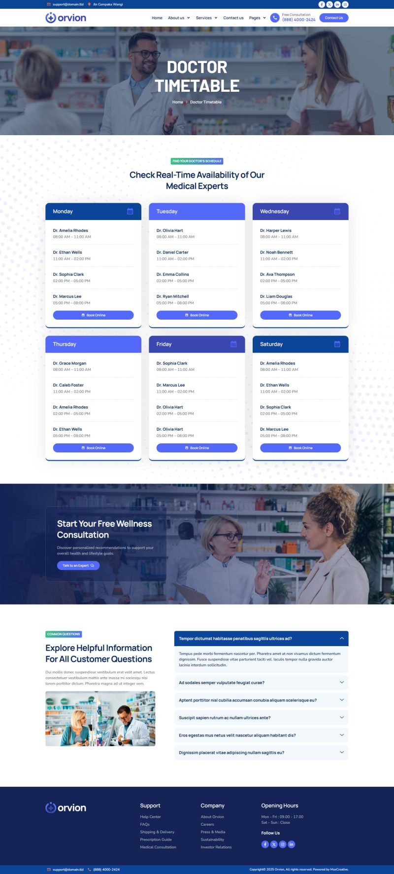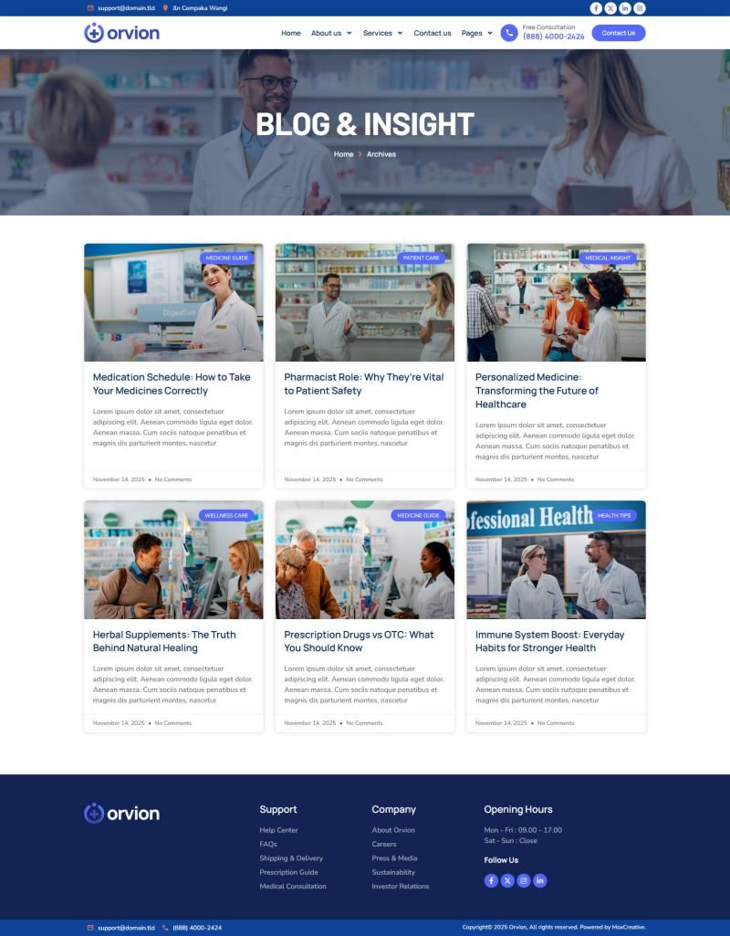 Orvion is Elementor Template Kit for pharmacy & medical service website. This template has modern layout with simple, professional and clean style. Suitable for any business related to medical & pharmacy. You can easily build medical service website, pharmaceutical website, medical clinic, health care, medical center, pharmacy store, and all business or service related to medical. Just drag and drop, no coding required.