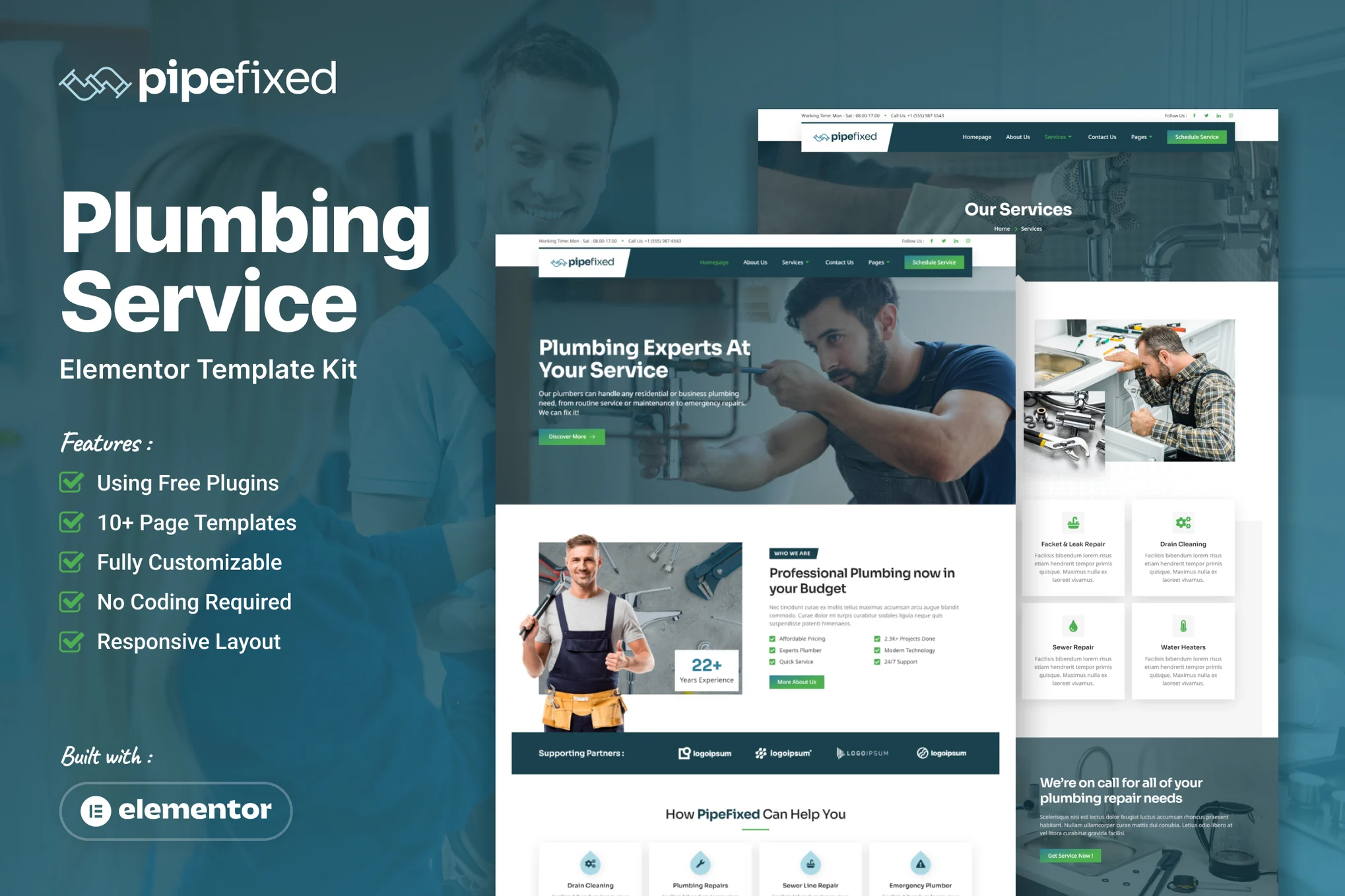 Introducing PipeFixed, the Elementor template kit crafted for Plumbing Service websites. Ideal for plumbing and construction businesses, it offers 10+ ready-to-use pages that are easily customizable without coding expertise. With its light design, ensures a clean and professional look, enhancing the visual appeal of your website. Elevate your online presence effortlessly, showcasing your plumbing and construction services with a polished and user-friendly website using PipeFixed.