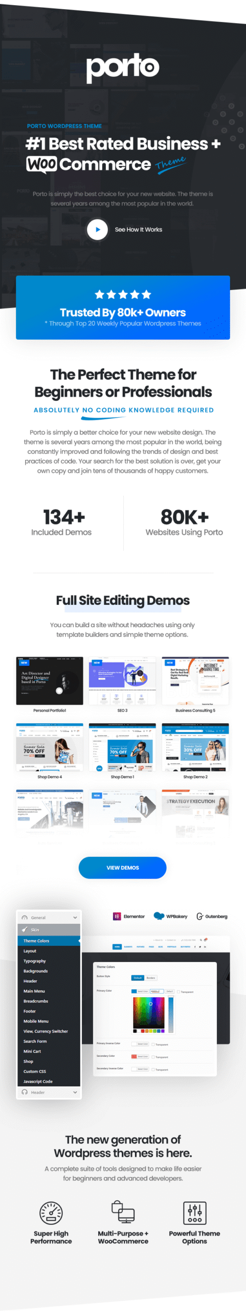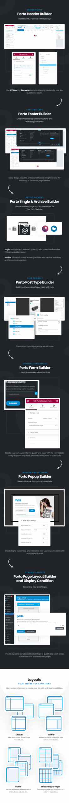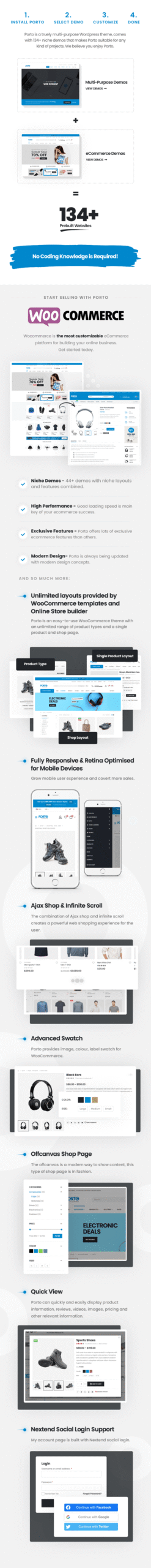 Compared to other multi-purpose themes’ general ecommerce features, Porto provides ultimate woocommerce features with exclusive skins & layouts and features. Porto guarantees super fast performance which is essential for your business & woocommerce shops. Please check below to see more features from Porto. Enjoy Porto Business & Woocommerce Theme!