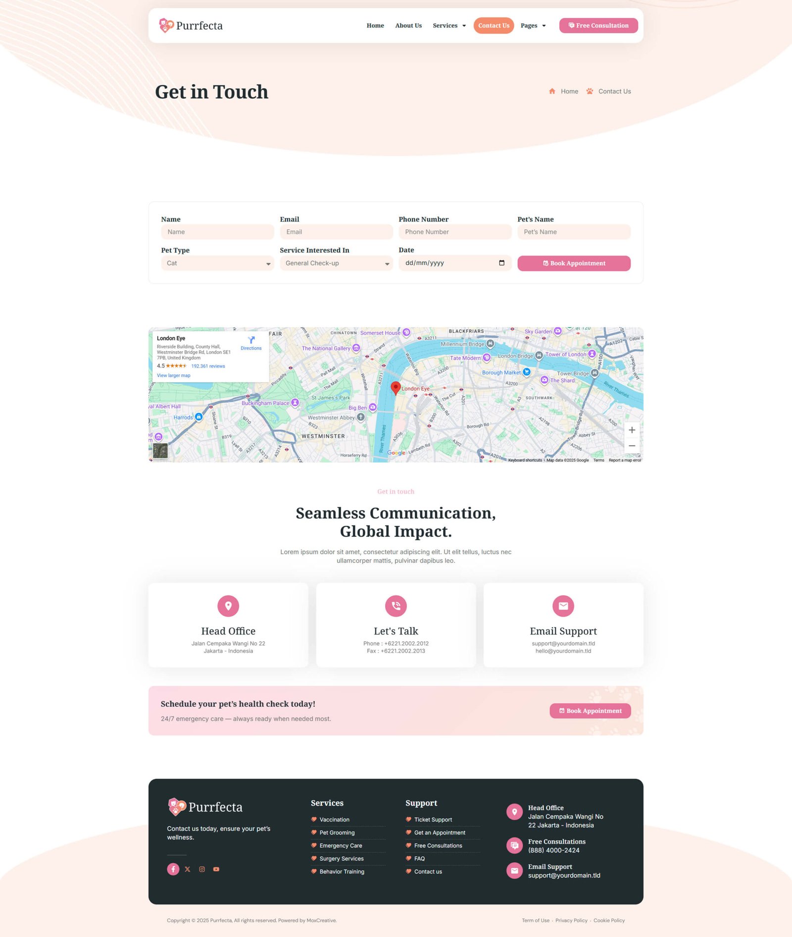 Purrfecta is an Elementor Pro Template Kit for Veterinary & Pet Care website. This template kit is designed for veterinary and pet care website, including pet related services such as veterinary, pet daycare, pet salon, pet centers, pet hospital, veterinary clinics, etc. It has 12+ pre-built templates, so you can easily make cool website to show your professional veterinary & pet care services with this elementor template kit.