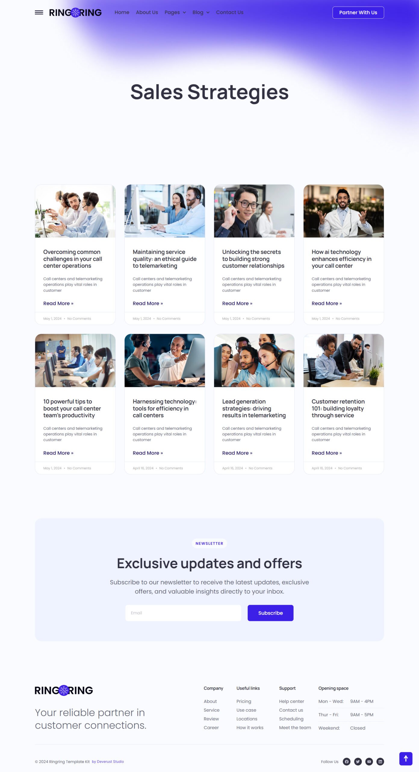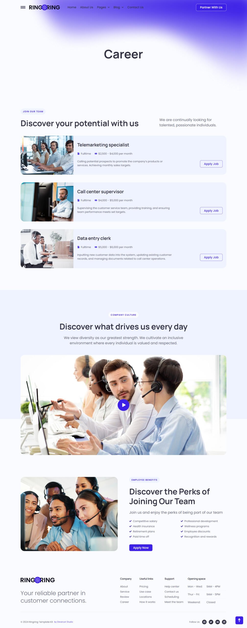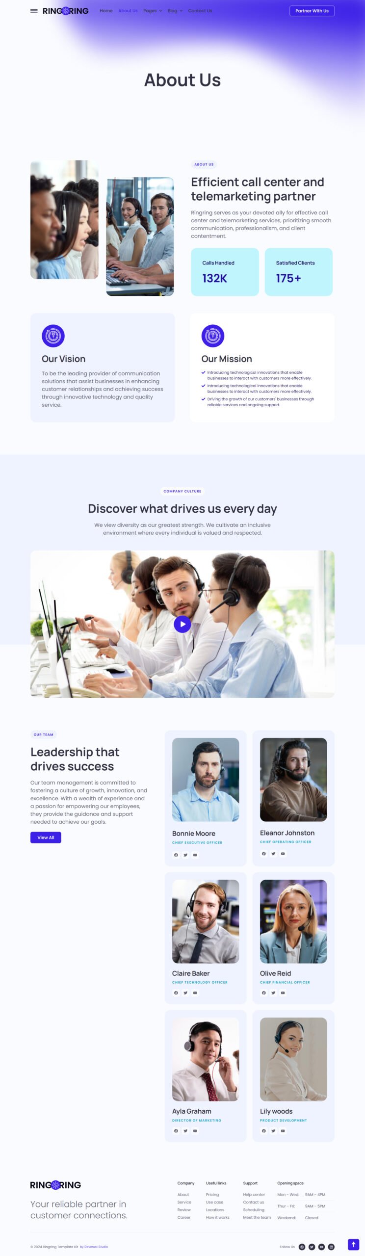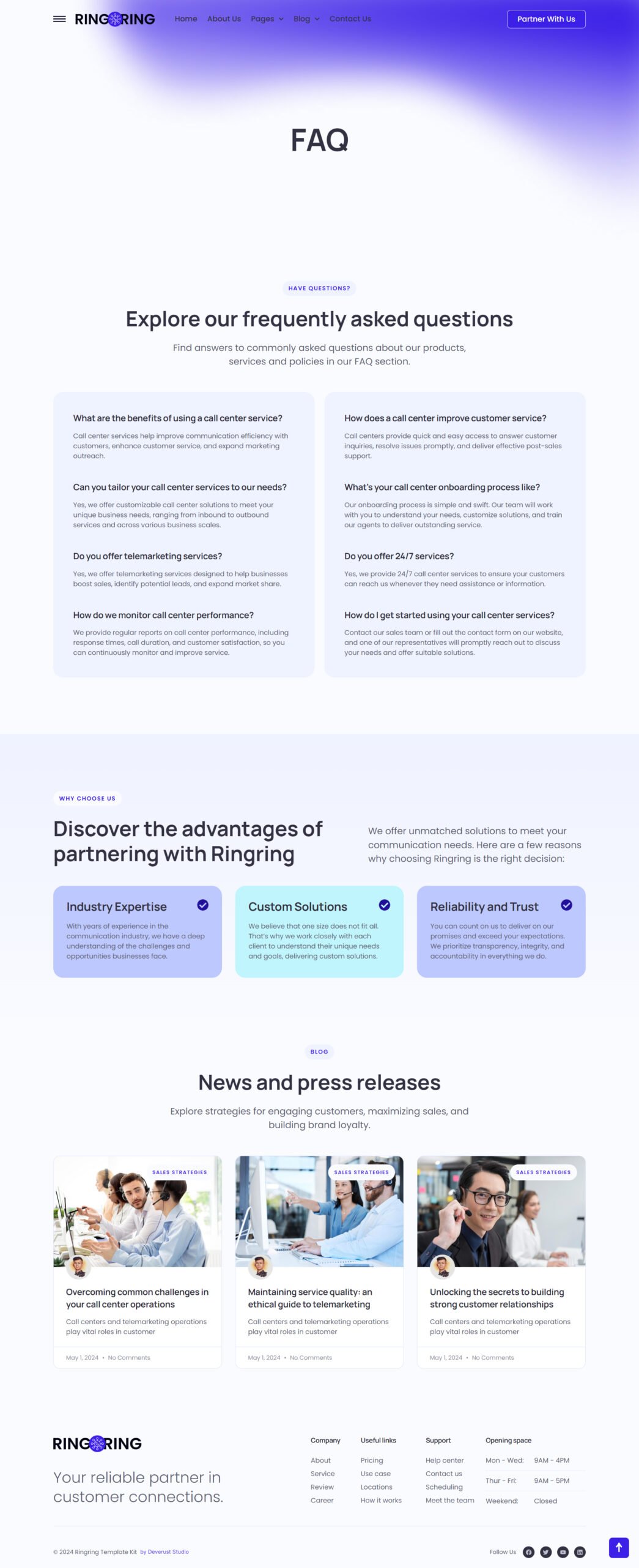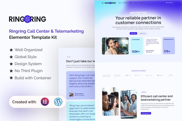 Tailored for call centers and telemarketing agencies, Ringring offers a comprehensive library of 19+ pre-designed templates. These templates include key features like service pages, team sections, and clear call-to-action buttons to drive conversions. All within the robust content management system of WordPress, Ringring empowers you to easily manage your website content and keep your audience engaged.