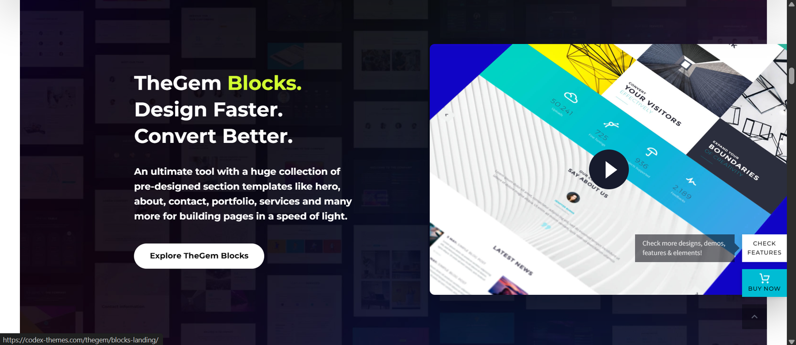 TheGem has over 40 complete design concepts, each and every one featuring its own style and character. These are not simple reskins; each demo has been thoroughly researched and features carefully considered design concepts, with a myriad of business types covered.