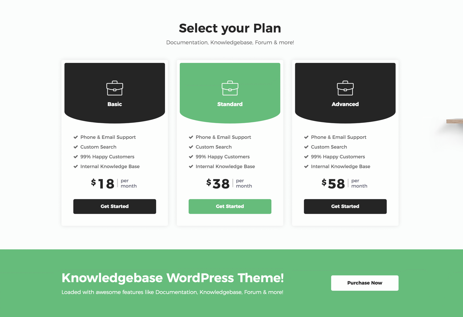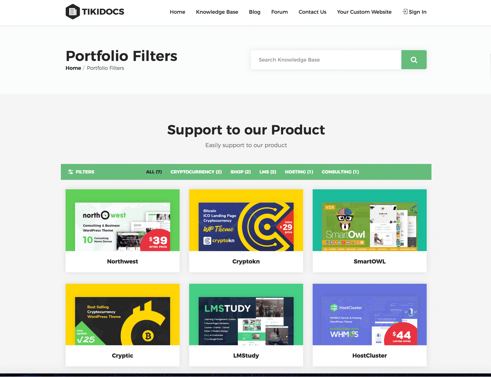 A basic functionality for a knowledgebase website is that you have to share your projects and background with your clients. You can add a Portofolio Showcase section where you can organize all of your projects by categories. This way you will build trust and clients can see how much experience do you have in your field.