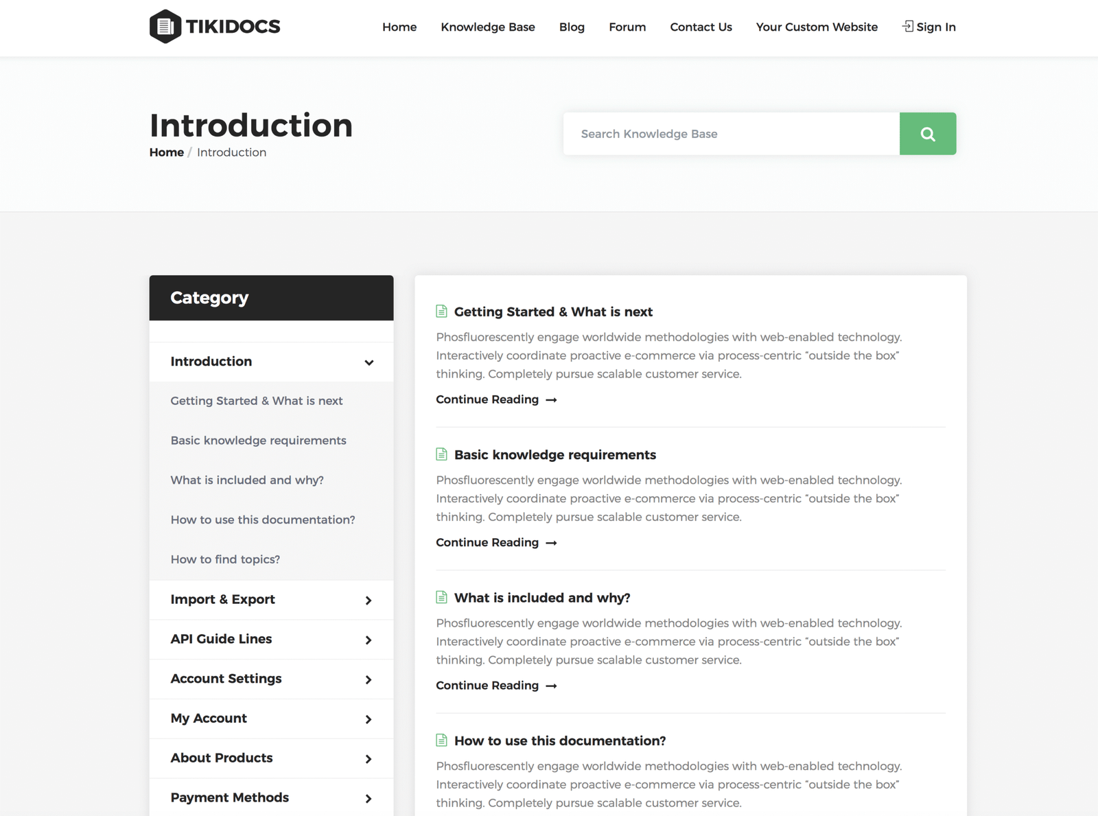 Tikidocs is a knowledge base theme developed for the centralization of website theme development department information.