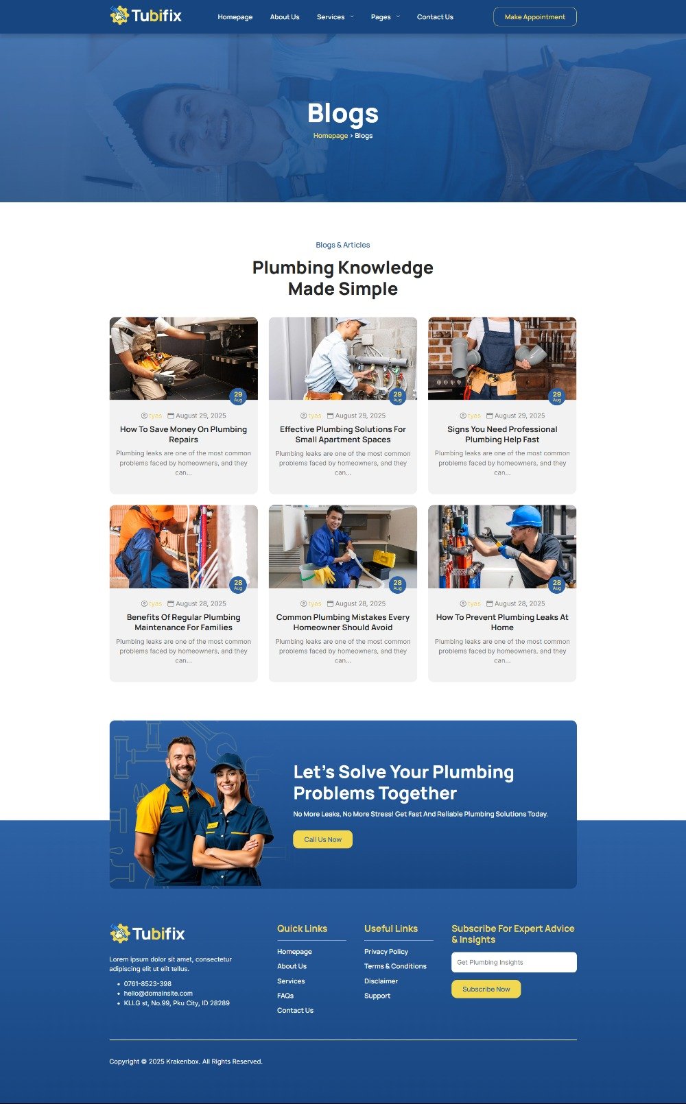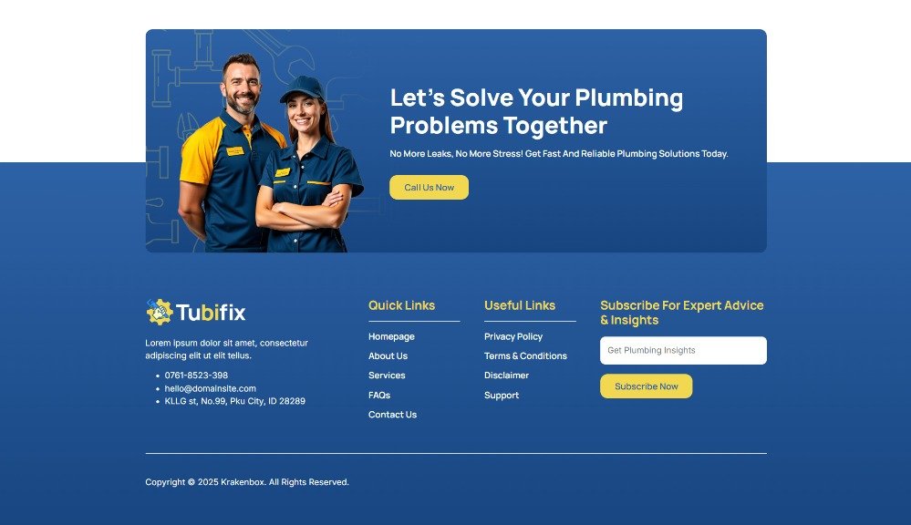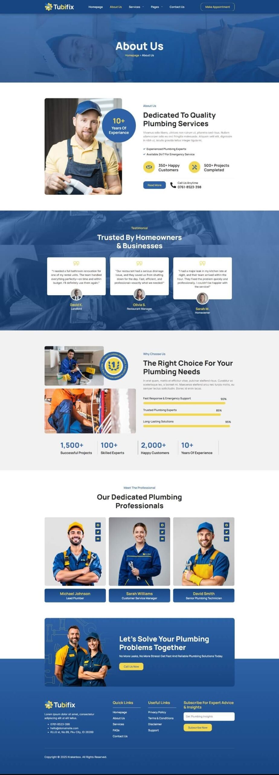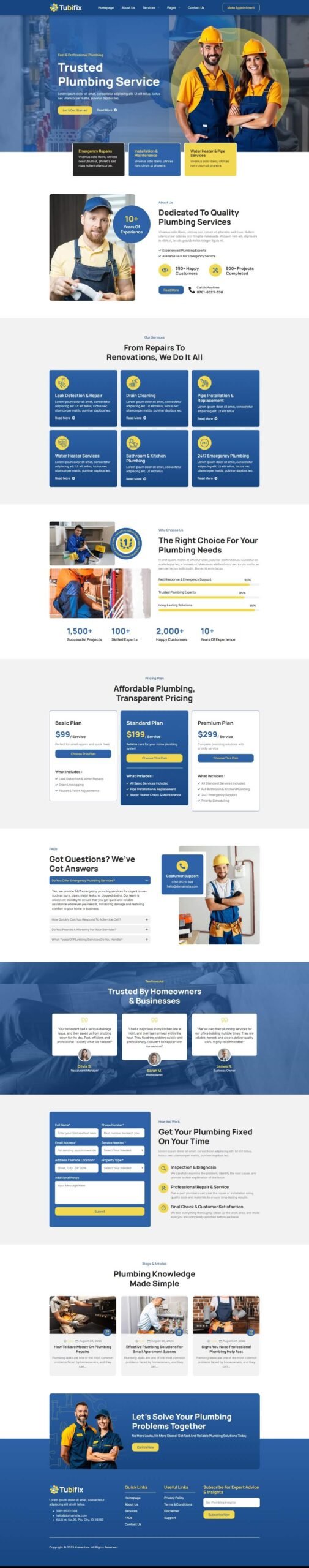 Tubifix is an Elementor Template Kit specially designed for Plumbing Services websites! This kit has a modern and creative design with a 100% fully responsive layout, easy installation, and sure very easy to customize because using Elementor so you don’t need a single line of coding!Save your time.