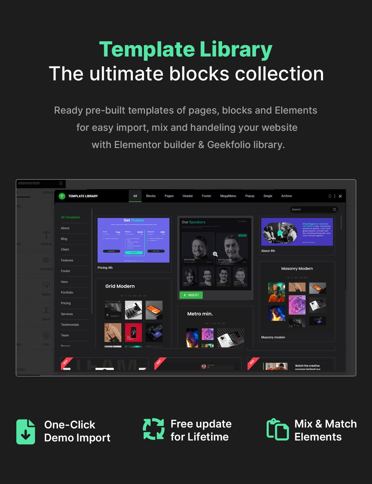 Feature using Elementor that allows users to create and customize the footer section of a website using the Elementor page builder. Which provides a drag-and-drop interface that makes it easy to create and customize the footer section without the need for any coding knowledge such as text, images, buttons, menus, and widgets. You can also customize the layout, color scheme, typography, and other design elements to match the look and feel of your website.