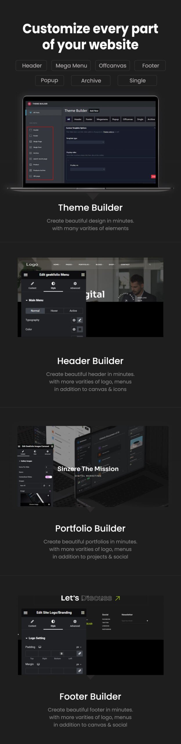 - Footer builder