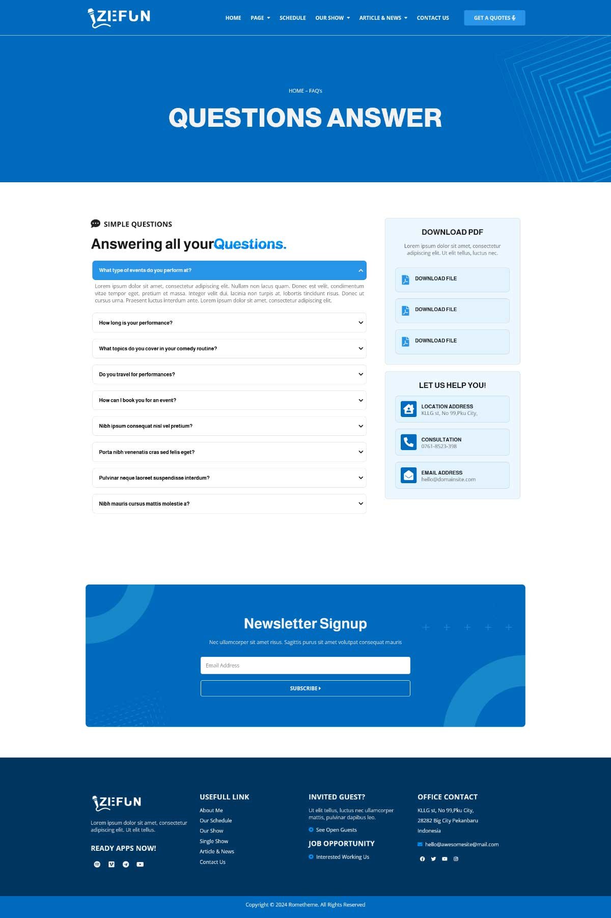 Zefun is a modern and dynamic WordPress template, specifically designed for comedian, club, actor, artist, and performance website service. It’s fully compatible with Elementor Page Builder, offering advanced features that are intuitive, customizable, and perfectly suited to meet the unique needs of your business.