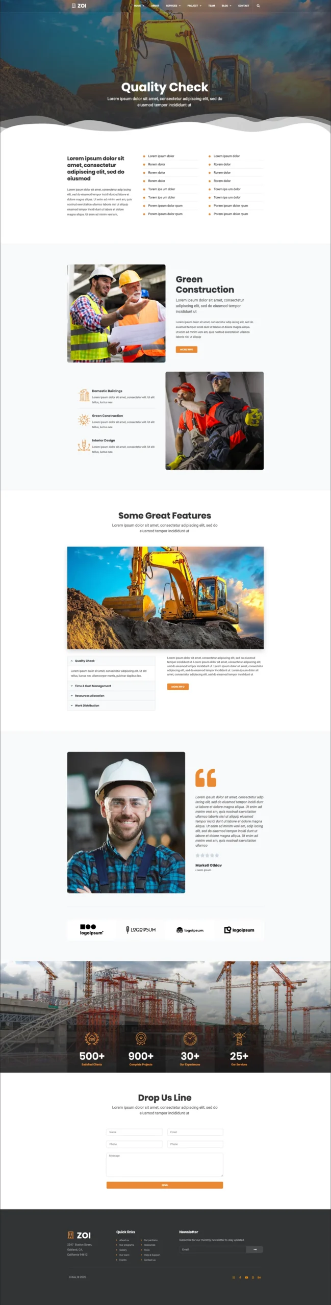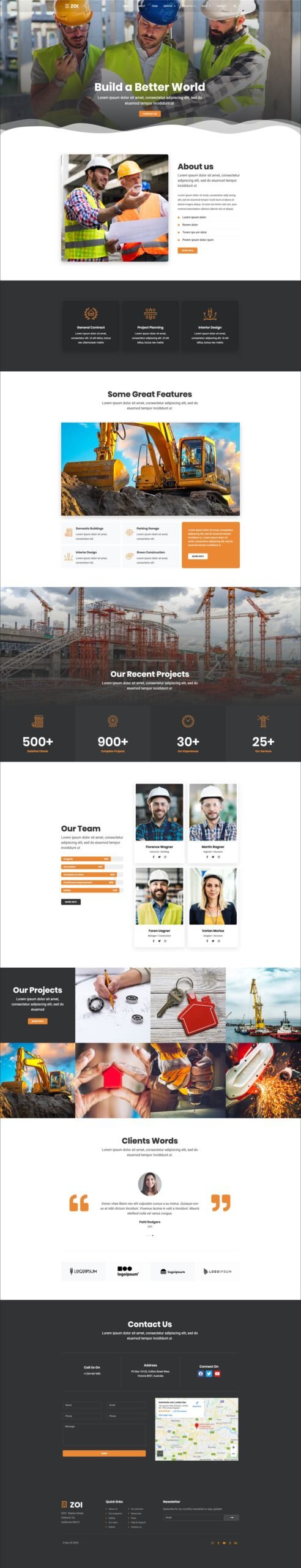 ZOI – Construction Template Kit includes pages like About us, Project, Services, Team and Contact us. The various Home layout helps you to showcase your services. ZOI – Construction Template Kit comes with a modern and clean design with a huge set of contemporary layouts designed to help you create a powerful showcase website. You can change the look and feel. No need to understand codding. It builds for one of the popular drag and drops page builder Elementor. A quick way to build your website.